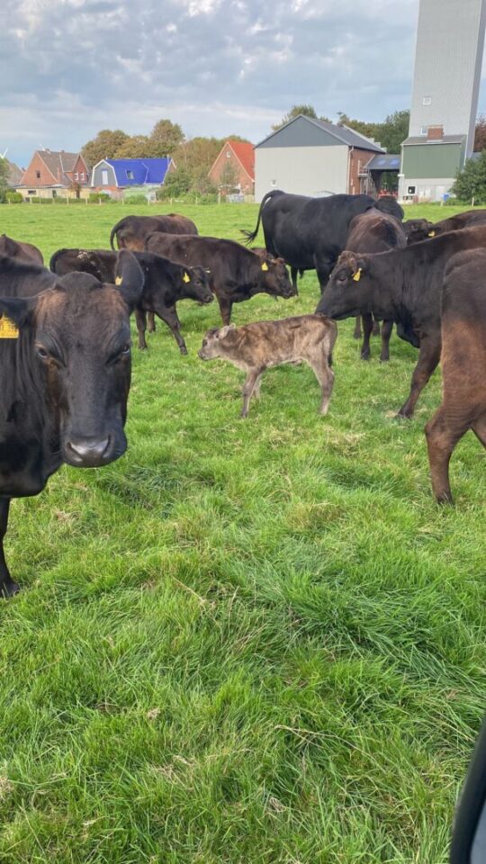 Ein weiterer Baustein unserer Haltung ist die Minimierung von Stress. Ob Gesundheitskontrolle, Transport oder Veränderungen in der Herde: Wir gestalten alle Abläufe so ruhig und schonend wie möglich. Durch den täglichen Kontakt sind unsere Wagyus zutraulich, neugierig und gelassen – ein Zeichen dafür, dass sie sich sicher und wohlfühlen.